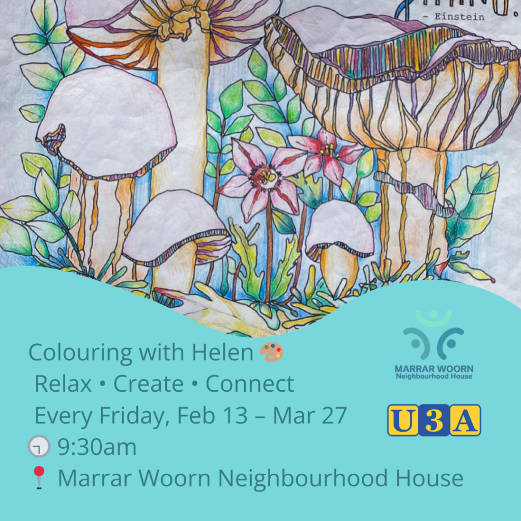 A peer support art group held at Apollo Bay Community Hall (also known as the Apollo Bay Senior Center) at 4 Whelan Street.