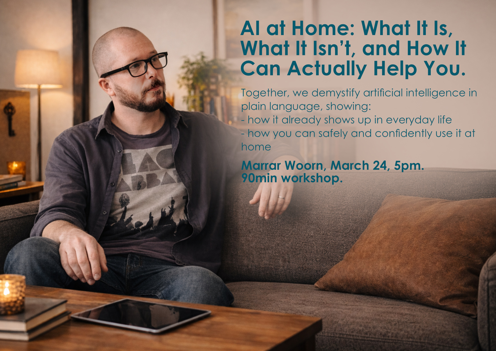 AI at Home: What It Is, What It Isn’t, and How It Can Actually Help You Mar 24 AI at Home: What It Is, What It Isn’t, and How It Can Actually Help You 5:00 pm - 6:30 pm Adult Education